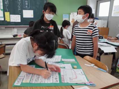 社会科の授業でクリーンセンターでのごみ処理や水について学習したことを新聞にまとめています。