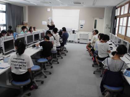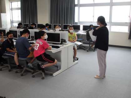 地域児童会の各会長が、明日の地域児童会に向けての説明を聞いています。