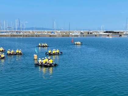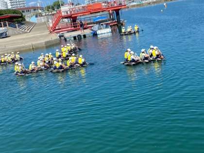 いかだが赤いブイ目指して15艇出航しました。