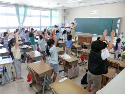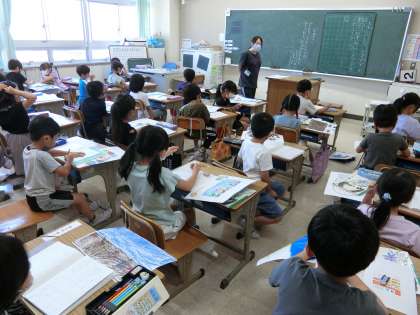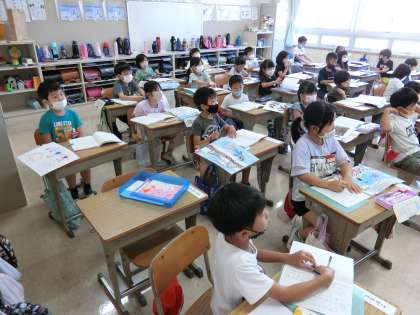 国語の授業で夏休みのことを絵をもとに文章にしたり、さっそく始まった体育大会に向けてダンスの練習に取り組んだりしています。