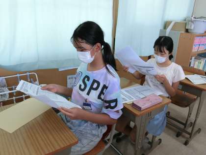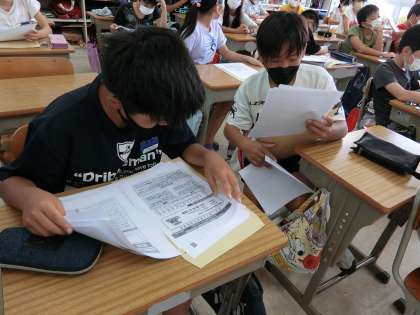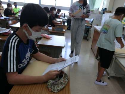みんな返ってきた結果を真剣に見ています。