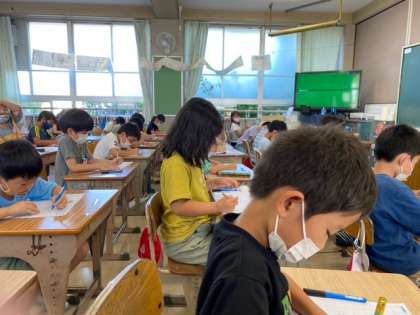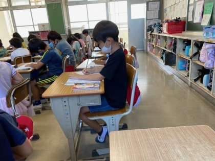6時間目です。疲れてきていますが、とてもいい姿勢で書写をしています。立派な姿です。