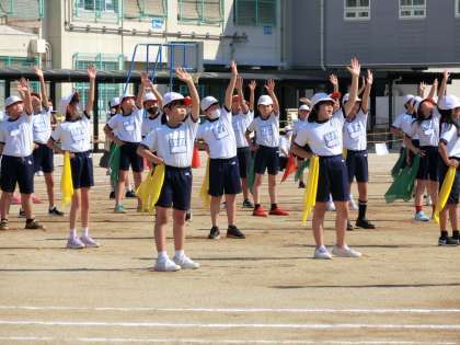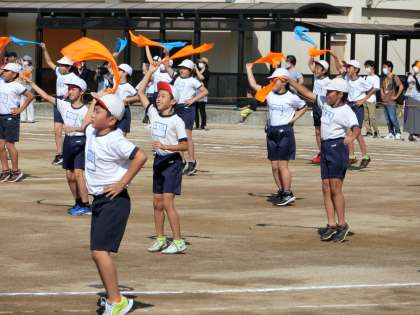 団体演技では、「新時代」の曲に合わせて、手具を大きく振りながら、キレのいいダンスを踊ることができていました。