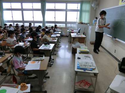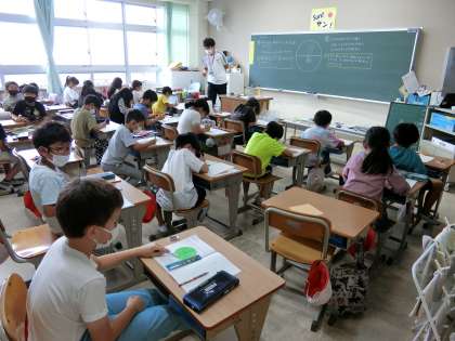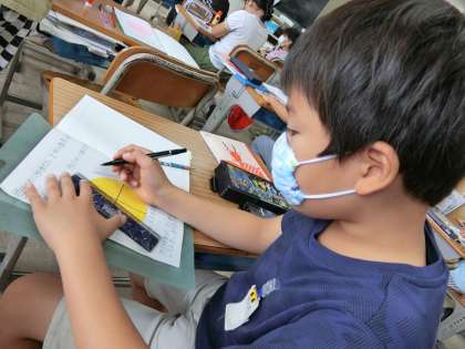 実際に自分で円の形の色紙に書き込みながら考えています。いろんな秘密が分かったようです。