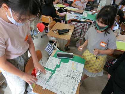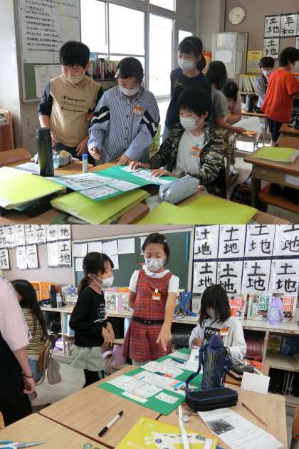 南海トラフのことや台風のことなど、それぞれのグループでテーマが決まっているようです。わかりやすく伝えようとすることができていますね。