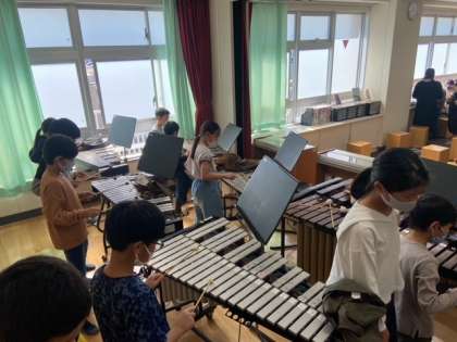 下世古先生の授業+楽器を触れるということで、子どもたちは朝からとてもテンションが上がっていました。楽器に関しては、知っているものや知らないものもあり、興味津々でした。また、知っていたけれどもきちんとした楽器の鳴らし方や叩き方があることを知り、驚いた表情も見せていました。