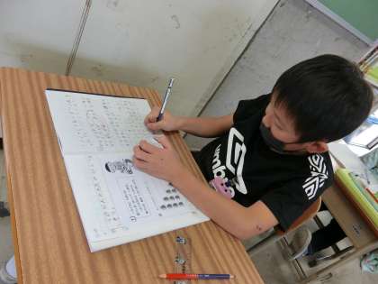 5の段の九九について考えています。自分なりの考えで、5の段の九九のひみつを見つけている子どももたくさんいます。