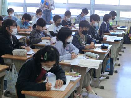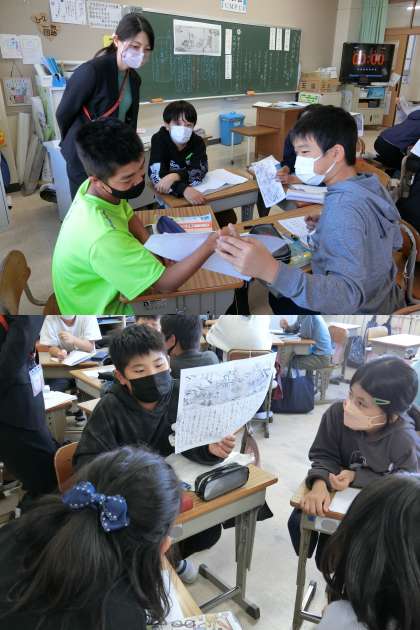 国語の授業で「鳥獣戯画」をもとに考えました。与えられた絵をもとに、筆者になりきって事実と意見をはっきりとさせながら「書く」活動です。