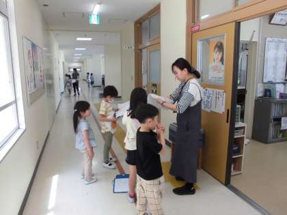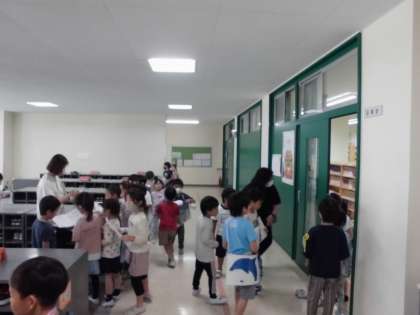 1年生が2年生の案内で学校たんけんを行っていました。