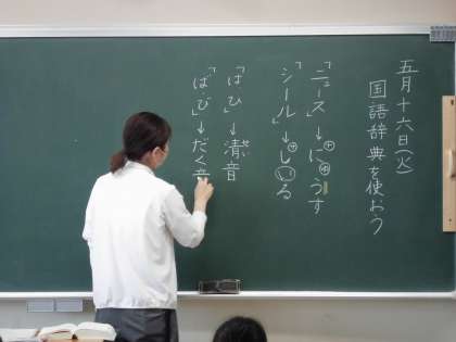 「シール」の「−」や、「清音」・「濁音」・「半濁音」の時の調べ方について、ていねいに伝えています。