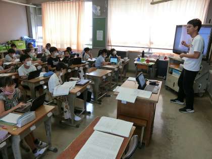 算数の授業中です。 「垂直」について考えています。 どのような条件がそろえば垂直と言えるのか、いろんな考えがありそうですね。