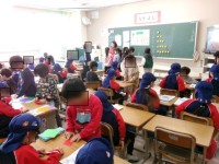 近くのこども園・幼稚園の,4月に1年生になる園児さんたちが,1年生の授業を体験し...