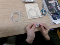 図工では,はりがねを使って3Dアートを作っています。道具を使ったり,巻き方を工夫...