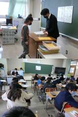 一人ひとり、言葉をかけてもらいながら通知表を渡してもらっています。中には、3学...