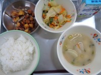 今日の献立は、『ごはん・牛乳・みそ汁・あじのみりん干し・芋煮』です。芋煮は里芋を...