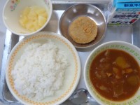 今日の献立は、『コッペパン・牛乳・パンプキンポタージュ・ハンバーグ野菜ソースかけ』です。
