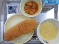 今日の献立は,『ごはん・牛乳・ハヤシライス・えのきベーコン」です。