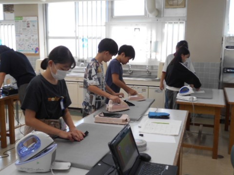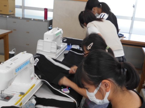 6年生はエプロンづくりに励んでいます。今日はポケットを作っていました。