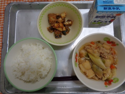 今日の献立は,『ごはん・牛乳・すき焼き風煮・さばのごまみそ焼き』です。