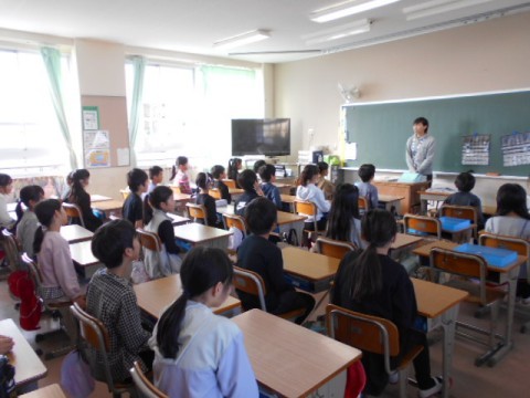 目をきらきらさせながら,先生のお話を聞いていましたよ。みんな姿勢がいいですね。