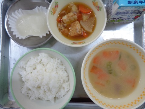 今日の献立は、『ごはん・牛乳・さつま汁・肉大根・ういろう』です。