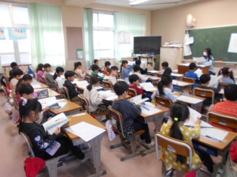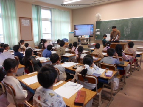 運動場では,体育係さんが掛け声をかけながら,みんなで準備体操をしています。やるき満々でがんばっていました。