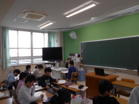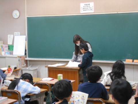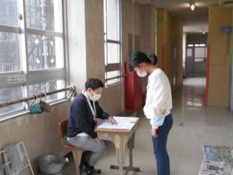 担任の先生と2学期を振り返り,あゆみをもらっています。