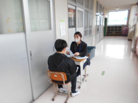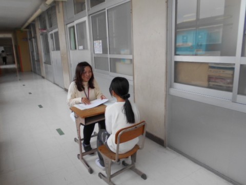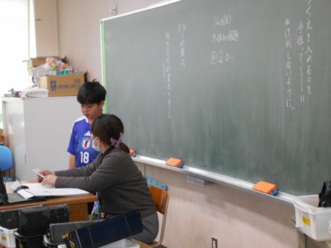 担任の先生と2学期をふりかえり,あゆみをもらっています。