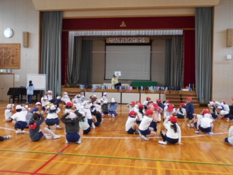 1年生は,パンダやゴリラなど動物になって表現していました。2年生は大縄の練習に励んでいました。