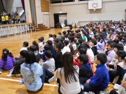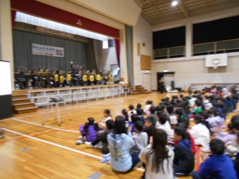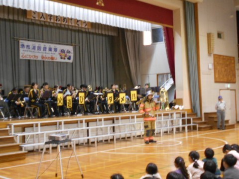 楽器の紹介のあと,子どもたちの知っている,子どもたちの好きそうな曲をたくさん演奏してくださいました。ミセスグリーンアップルのメドレーでは,たくさんの子が歌を口ずさんでいましたよ。楽しい時間はあっという間に過ぎていってしまいました。素敵な演奏を聴かせてくださった消防音楽隊のみなさん,どうもありがとうございました!