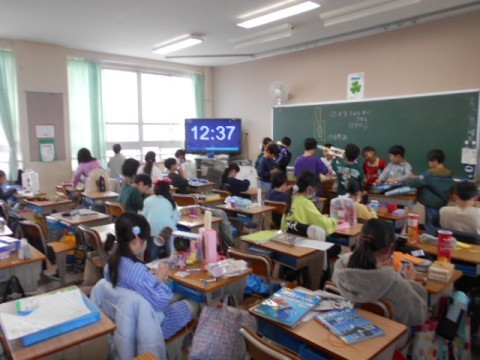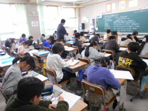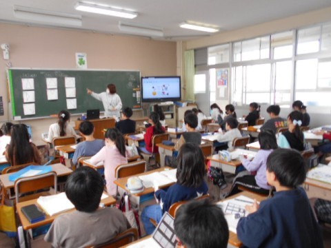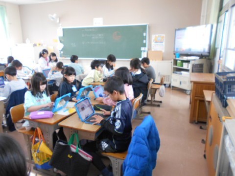 1年生,5年生,3年生の様子です。1年生は昔あそびということでかるたをして楽しんでいました。