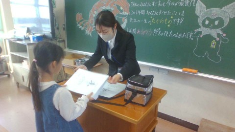 担任の先生からあたたかな励ましの言葉とともに,一人ひとり通知表をもらいました。