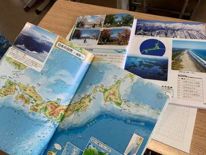 日本の領土・領海の学習のあとは,日本の地形について学習します。地形の違いがそこに暮らす人々のくらしの違いにつながっていることを学習していきます。