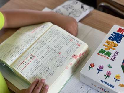 漢字辞典を使って漢字の学習をしたり,メモの取り方の学習をしています。
