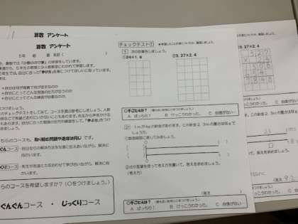 5年生の算数は,来週から少人数教室を使って,2つのコースに分かれての少人数指導が始まります。自分に合った学習ができるように,アンケートをとりました。