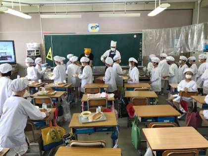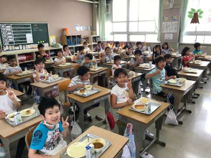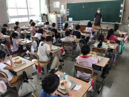 準備の手順も以前とは少し異なっています。そんな中、子どもたちは、静かにてきぱきと準備を進めていました。