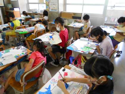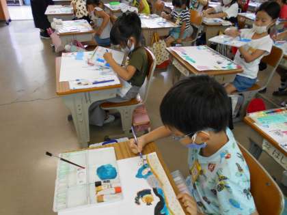 水をたっぷり使って,色をつくります。