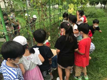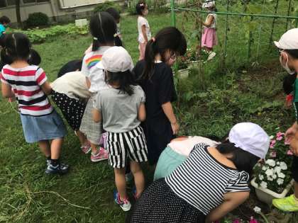 中庭で虫取りをしました。コオロギとダンゴムシがいました。