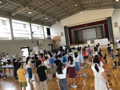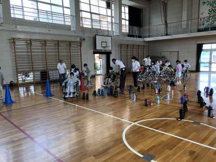 総合的な学習の時間で勉強したことを体験し,障がいを持った方の生活を感じることができました。アイマスクをして,白杖で障がい物を感じながら歩くことや,車いすに乗ったときの町の見え方を体験しました。振り返りでは,怖かった体験が友だちとの交流で話題になっていました。