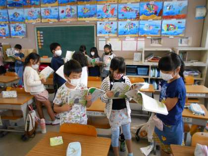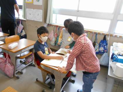 グループに分かれて,音読の練習です。