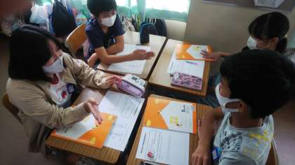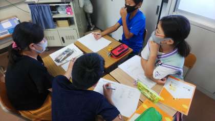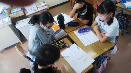 今日は総合的な学習の時間として、『松井泉の社長を助けるために、出来ることはないか』ということで、プログラミング的思考で考えました。