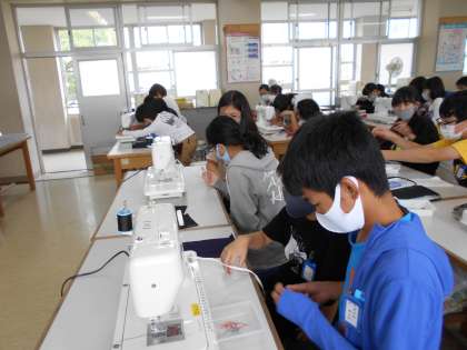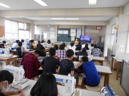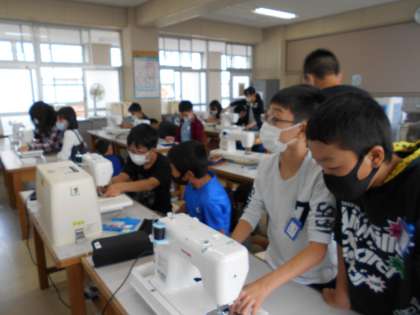 ミシンの使い方を確認しています。