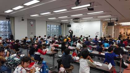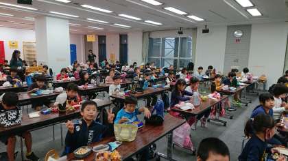 少し早めの昼食ですが、おいしくいただきました。感染症拡大防止のため、間隔をあけて、食べています。
