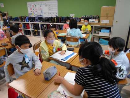 作文を書く前に,ふりかえって,材料を見つけていきます。