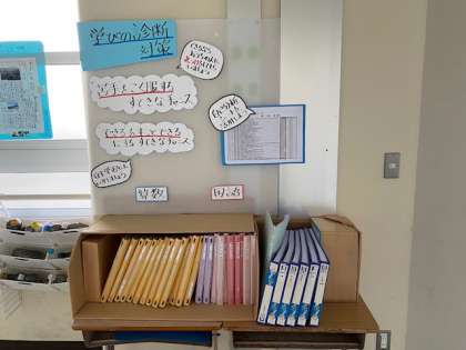 今年度の学びの診断も迫ってきました。過去の問題から、自分の得意な分野と苦手な分野を分析します。それをもとに、学習したいことにいつでも取り組めるように分野ごとに分かれたプリントコーナーを設置しました。