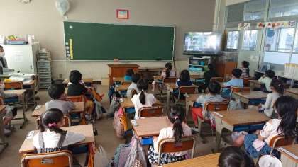 DVDを見て、交通事故に合わないように、大事なことについて学びました。みんな真剣に見ていました。