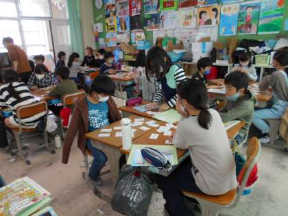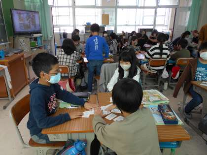 カードゲームを活用して,アルファベットの小文字を学習しています。