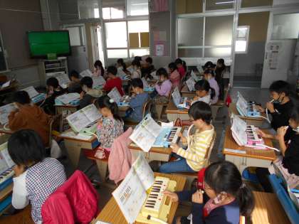 全員が合格している曲を,できるだけ早く吹くことに挑戦しました。