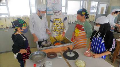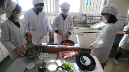 班で協力しながら、粉ふきいもと野菜ソテーを作りました。