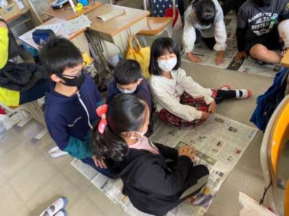 面積の学習です。1平方メートルってどれぐらいの広さだろうと疑問が出たので、実際に作ってみました!